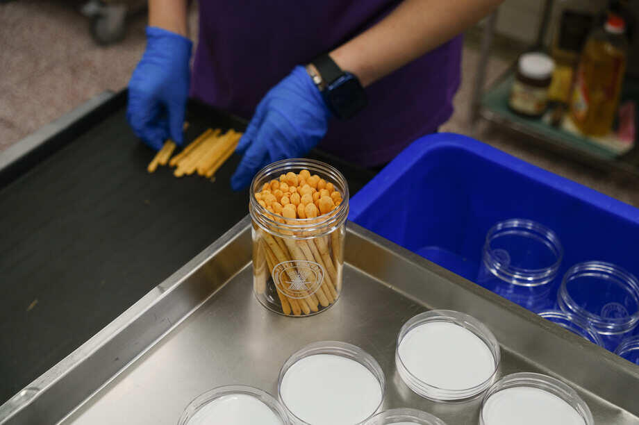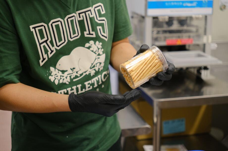 陳氏によると、かつてチーズスティックは円筒形のチューブに詰められるのが一般的だったという。スティックは長く繊細なため、一本ずつ手作業で挿入する必要があり、時間のかかる作業だった。さらに、お客様にとってスティックを折らずに取り出すのは困難だったという。